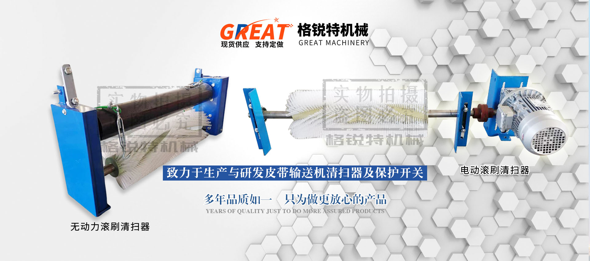 衡水格銳特機(jī)械科技有限公司常年致力于生產(chǎn)與研發(fā)皮帶輸送機(jī)清掃器及保護(hù)開(kāi)關(guān),其中主營(yíng)聚氨酯清掃器,合金清掃器,電動(dòng)滾刷清掃器,機(jī)械式滾刷清掃器,緩沖床,緩沖條,雙向拉繩開(kāi)關(guān),兩級(jí)跑偏開(kāi)關(guān),打滑檢測(cè)器,料流檢測(cè)器等保護(hù)開(kāi)關(guān),常年銷往各大水泥廠,煤礦廠,電廠,輸送機(jī)廠家,質(zhì)量?jī)?yōu)越,價(jià)格實(shí)惠,望各大領(lǐng)導(dǎo)及同行來(lái)廠參觀指導(dǎo),期待您的光臨?。?!